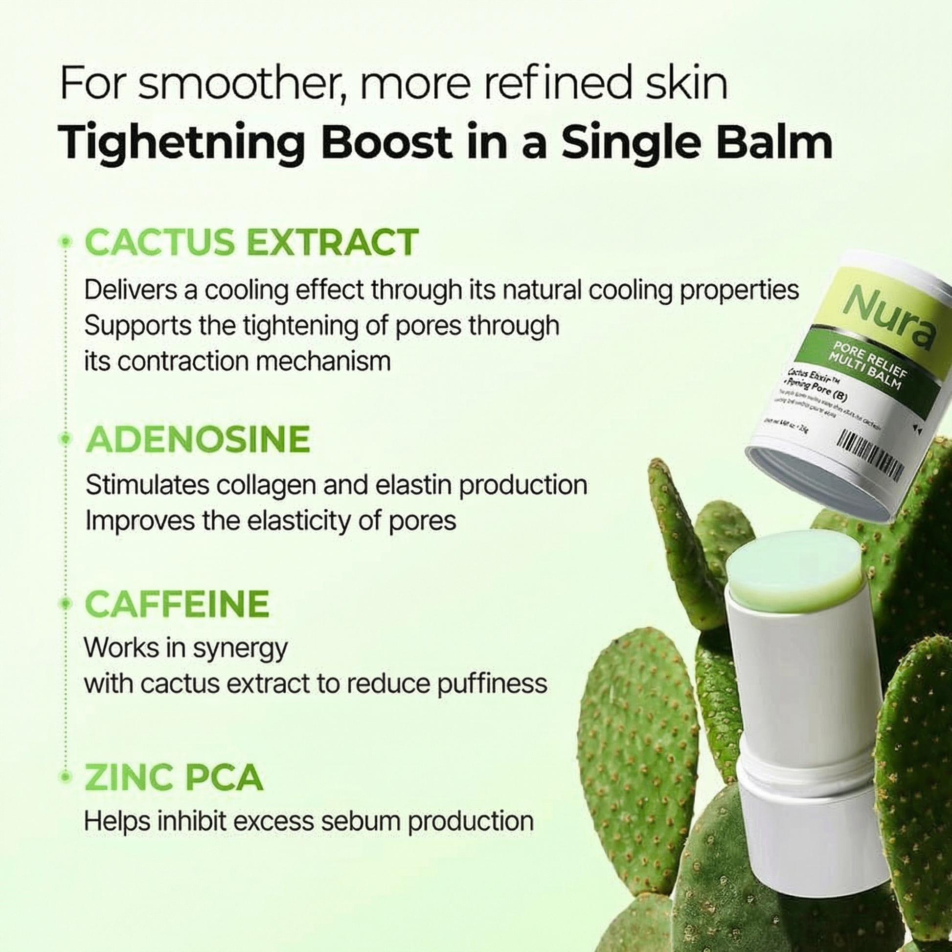 Absolutely. The balm is free from harsh acids, parabens, sulfates, and synthetic fragrances. Its cactus extract delivers soothing cooling relief, making it safe for sensitive or reactive skin while still providing visible refinement and smoothing benefits.